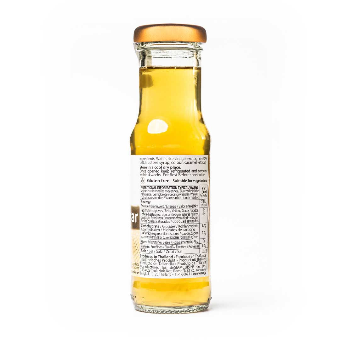 Ingredienti: Acqua, aceto di riso (acqua, riso) 42,00%, sale, sciroppo di fruttosio, colore: Caramello (E150c).