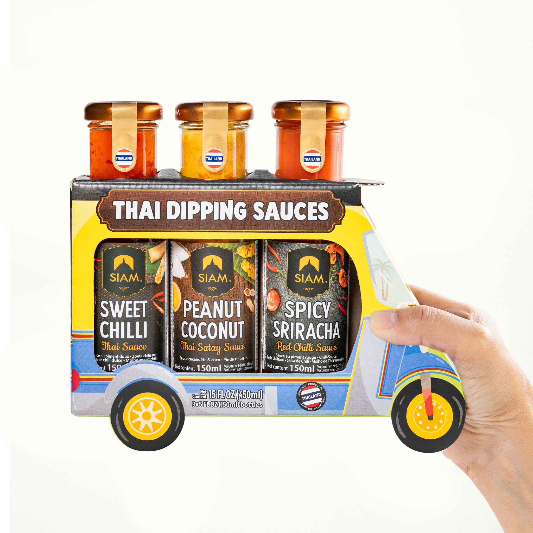 Ingredienti: Acqua, zucchero, peperoncino 13,40%, estratto di cocco (cocco, acqua) 6,70%, aglio, arachidi, aceto distillato (acqua, regolatore di acidità: acido acetico), sale, tamarindo, olio di girasole, addensante: Amido di tapioca modificato, Semi di sesamo, Semi di coriandolo, Addensante: Amido di tapioca modificato, Regolatore di acidità: Acido acetico, Citronella, Scalogno, Regolatore di acidità: Acido lattico, Conservante: Benzoato di sodio, Addensante: Gomma Xanthan, Semi di Cardamomo, Semi di Cumino, Radici di Galangal, Semi di Senape, Curcuma, Antiossidante: Acido ascorbico, buccia di lime Kaffir.